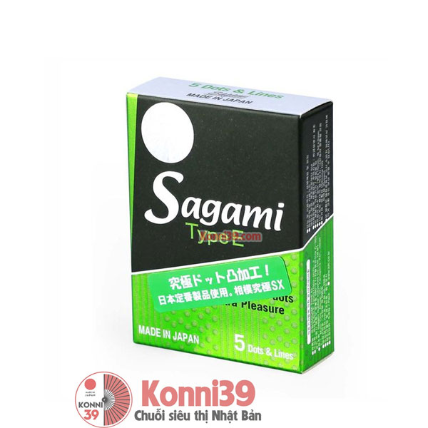 Bao cao su Sagami Type E hộp 5 chiếc – có gân, chấm nổi, có màu