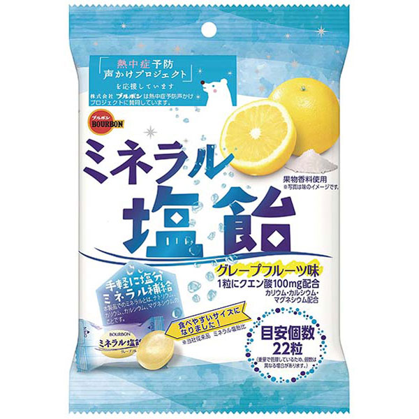 Kẹo muối Mineral Bourbon với chiết xuất từ trái chanh tươi mọng nước thanh mát kết hợp với muối, kẹo chanh muối mang hương vị chua chua mặn mặn đặc trưng.