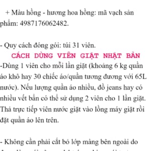 - Đặc biệt sản phẩm chứa các thành phần có nguồn gốc từ thực vật. Giặt một lần là sạch.